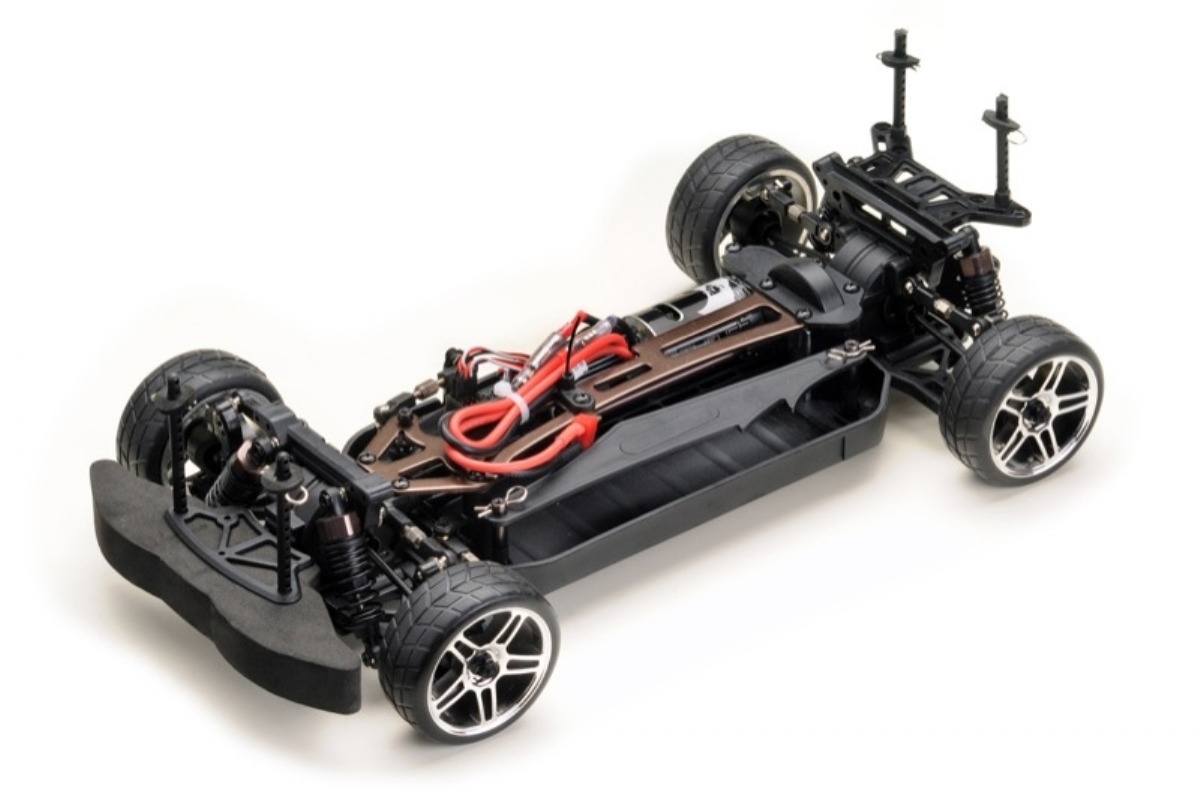 Das Auto wird von einem 540er 15T Bürstenmotor befeuert, der direkt auf den Allradantrieb zugreift. Die beiden Differentiale (vorne und hinten) werden durch eine Aluminium-Antriebswelle angetrieben. Durch die höhere Leistung des Fahrtenreglers und den Einsatz von T-Steckern kann jeder 2S LiPo-Akku verwendet werden - egal, welche C-Rate und Kapazität.