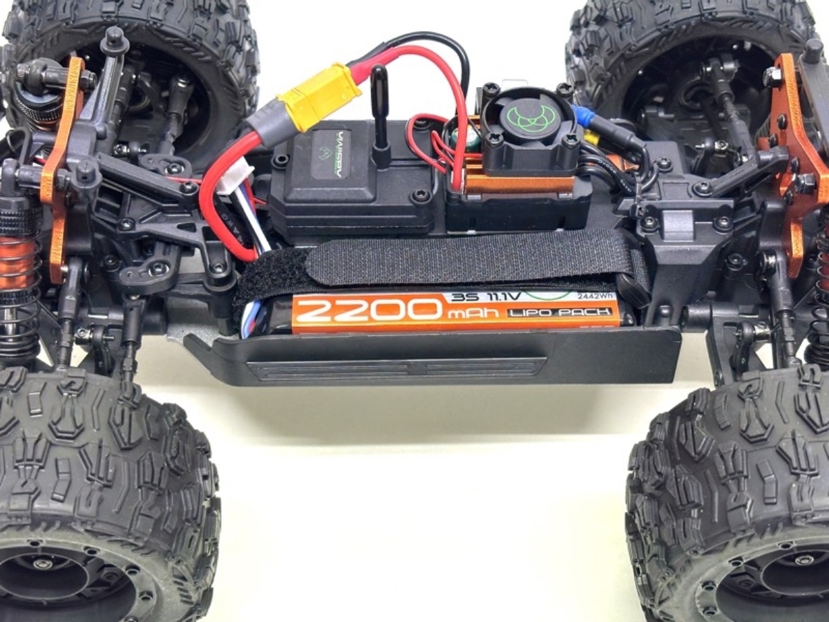 - Abgedichtetes Getriebe und Lenkservo mit Metallzahnrädern.