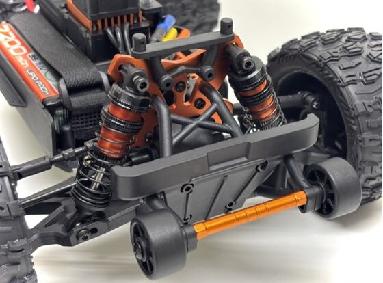 Aber das ist noch nicht alles! Der Monster Truck Absima ist mit hochwertigen Komponenten ausgestattet, darunter hydraulische Stoßdämpfer aus Aluminium, Stabilisatoren und eine CNC-Aluminium-Chassisplatte T6061. Die Karosserie im Racing-Design zieht garantiert alle Blicke auf sich, während realistische Details wie die Rückspiegel und die vordere Stoßstange für einen authentischen Look sorgen. Darüber hinaus lässt sich die Höchstgeschwindigkeit über einen einfachen Drehknopf einstellen, wodurch es sich perfekt für Fahrer aller Niveaus eignet.