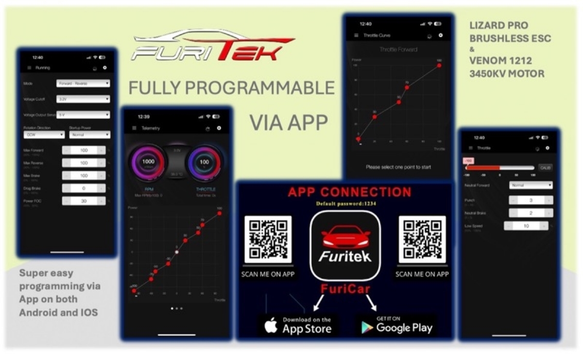 - FURITEK Brushless-System - Programmierbar über App für ultimative Kontrolle und Anpassung.