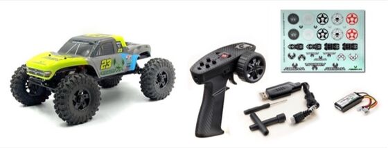 Inklusive ist eine 2.4GHz 4-Kanal-Fernbedienung mit allen Standardfunktionen (TRIM, D/R, REV). Da Empfänger und ESC unabhängig sind, können auch andere 4-Kanal-Fernsteuerungskits (TX & RX) verwendet werden.