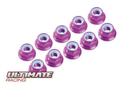3MM. ALU. NYLON NUT W/FLANGED PINK (10pcs)