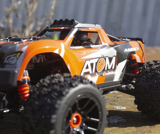 Ein robustes Wellengetriebe und 3-Gang-Differentiale übertragen die Kraft über alle vier Räder auf den Boden und sorgen für erstaunliche Stabilität und Manövrierfähigkeit. Der ATOM ist mit einer individuell gestalteten, siebgedruckten LKW-Karosserie ausgestattet, die mit einem Käfig verstärkt ist und in vier Farben für einen Look im Monstertruck-Maßstab erhältlich ist. Jeder ATOM wird mit Stoßdämpfern in der Farbe der Karosserie, einem Kühlkörper für den Motor und Zubehör für die Radmitte geliefert! Die Gummireifen mit leistungsstarkem Profil sorgen für Grip und Kontrolle, unterstützt von den farblich abgestimmten Federstoßdämpfern.