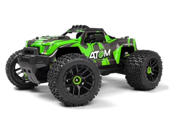 Der ATOM AT1 ist mit einem starken Kardan-Antriebsstrang und 3-Gang-Differentialen ausgestattet, die für Stabilität und ausgezeichnetes Handling sorgen. Die Leistung wird effizient auf den Boden gebracht, was zu beeindruckenden Fahreigenschaften führt. Der Truck verfügt über eine käfigverstärkte, individuell bedruckte Karosserie, die in vier Farben erhältlich ist. Jede Version des ATOM kommt mit farblich abgestimmten Stoßdämpfern, einem Kühlkörper und Radnaben-Zubehör.