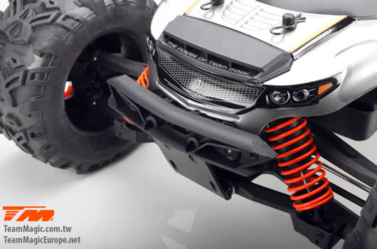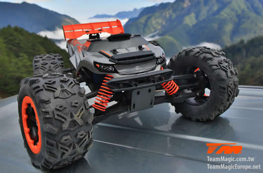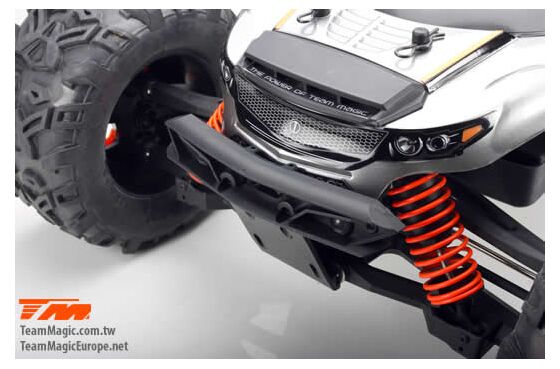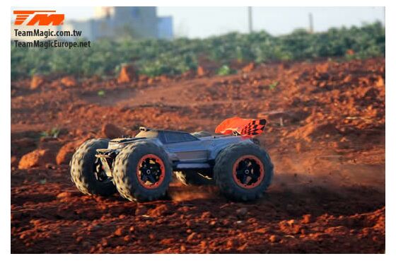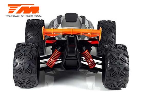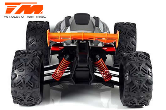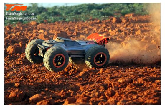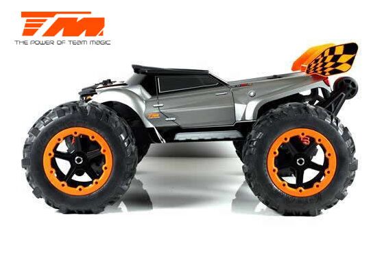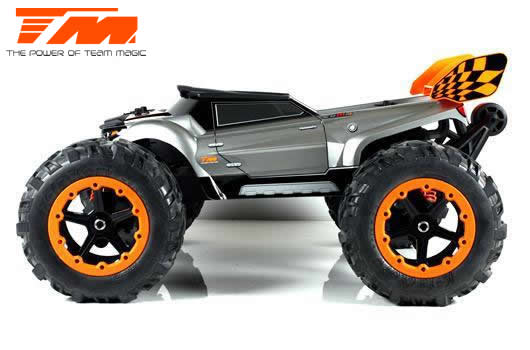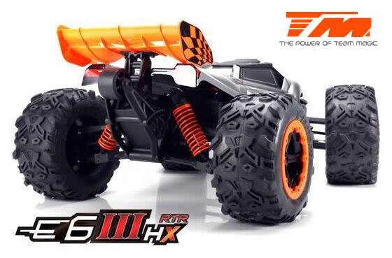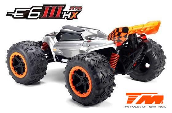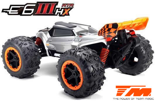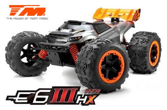 Der Team Magic E6III HX ist der ultimative Monstertruck aus dem Hause Team Magic. Schneller grösser, agressiver. Mit Backflips auf Kommando und Geschwindigkeiten von bis zu 90km/h können Sie sich sehen lassen. Geschlossenes Getriebe, ganzteilige Tuning CVD Stahl-Antriebswellen und symetrische Schwingen auf allen 4 Achsen sowie Hobbywing Elektronik im Herzen machen diesen Truck zu einer beeindruckenden Kampfmaschine.