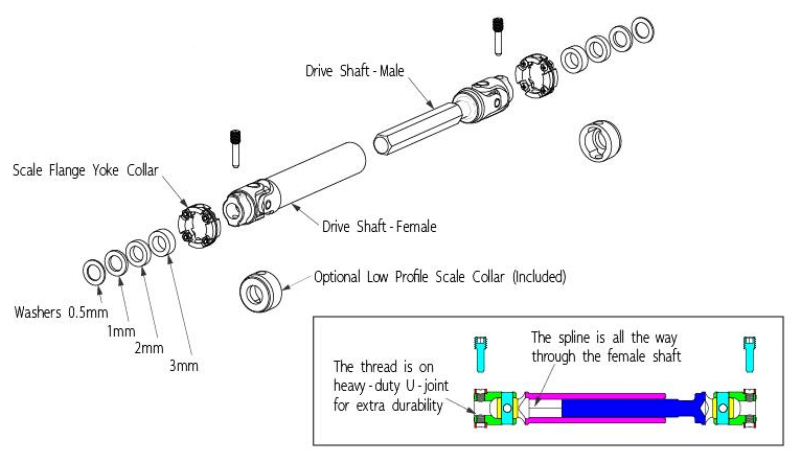 BADASS Heavy Duty Steel Center Drive Shaft, 51-56mm Pin to Pin, 1pcs.