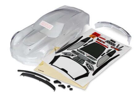 Body, Chevrolet Corvette Z06 (clear, requires painting)/ decal sheet (incl udes side mirrors, spoiler, & mountin