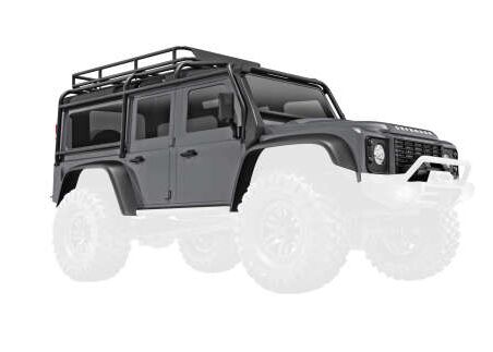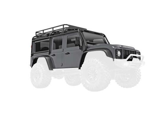 Body, Land Rover Defender, complete, silver (includes grille, side mirrors , door handles, fender flares, fuel c