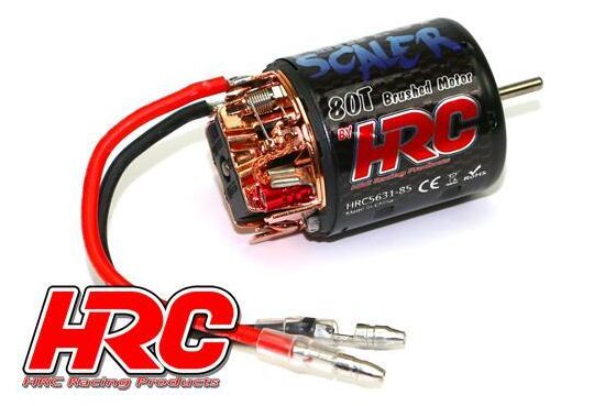 Dieser Bürstenmotor ist eine gute Wahl für langsame Fahrzeuge, bei denen präzise Fahrkenntnisse erforderlich sind. Die HRC Racing Bürstenmotoren entsprechen den höchsten Qualitätsstandards für Bürstenmotoren. Wir setzen unser gesamtes Wissen in diesen Motor ein, um die beste Leistung zum besten Preis zu bieten. Der Motor ist Standard 540 und ist mit den meisten 1:10er Modellen kompatibel. Hocheffiziente Keramikmagnete sowie Kupferdraht mit geringer Widerstandsfähigkeit machen den Motor zu einer Rennmaschine. Der Kopf verfügt über speziell geschlitzte Kühlelemente, um kühler zu laufen. Der gesamte Motor ist zerlegbar und kann leicht gereinigt werden. Bürsten können einfach ausgetauscht werden. Der Motor wird mit gelöteten Kabeln und Steckverbindern geliefert. Bauen ihn ein und dominiere die Strecke! Wicklungen: 80 Leerlaufdrehzahl: 5.600 U/min Stromaufnahme: 1,3Ah Spannung: 7.2-7.4 Volt Baugröße: 540 Wellendurchmesser: 3,18 mm Kugellager: Doppelt kugelgelagert HRC5631-13 - Motor 13t: 32'000 RPM HRC5631-17 - Motor 17t: 24'000 RPM HRC5631-19 - Motor 19t: 22'500 RPM HRC5631-40 - Motor 40t: 11'300 RPM HRC5631-60 - Motor 60t: 7'900 RPM HRC5631-80 - Motor 80t: 5'600 RPM Kompatibler elektronischer Fahrtregler: HRC5601 oder HRC5601C