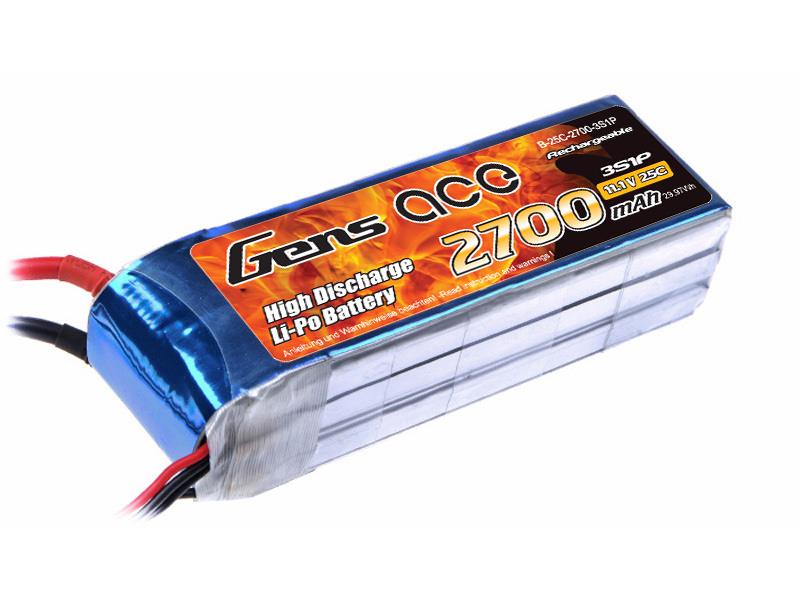 Gens Ace, Avion, Helicoptère, Multicopter, Bateau, Kapazität: 2700mAh, XT60, 5C, Ladung Maximalstrom (A): 13A, Entladung (Dauerstrom): 67A, Entladung (Maximalstrom): 134A, 25C, Höhe: 25mm, Breite: 36mm, Länge: 105mm, Gewicht: 195g, 3S - 11.1 LipoV, Softcase, Lipo, 6928493355435