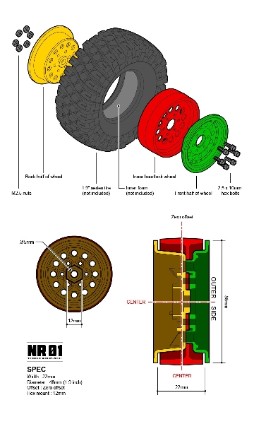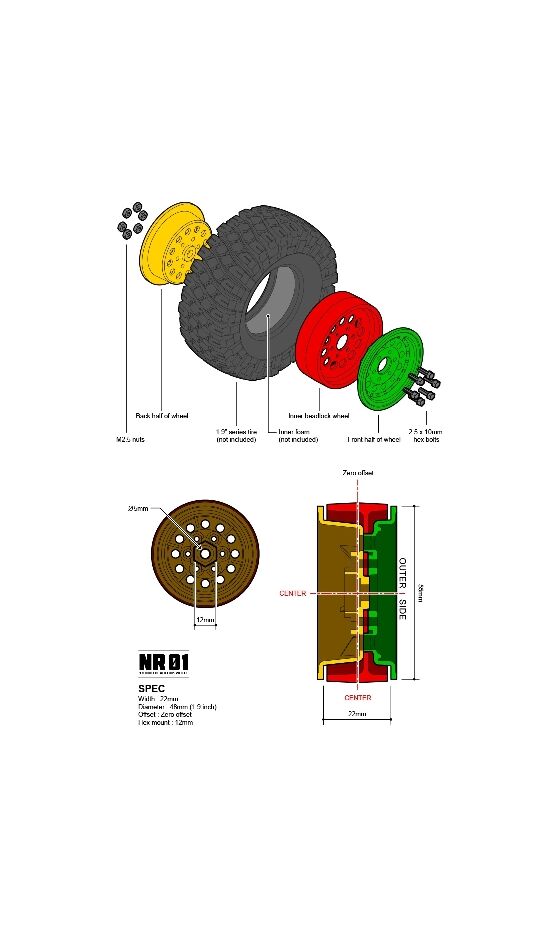 Gmade 1.9 NR01 beadlock wheels (Black) (2)