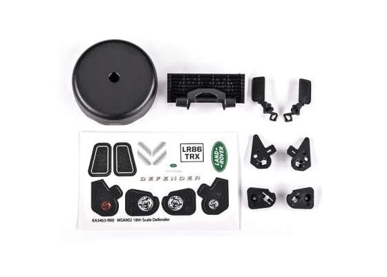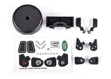 Grille/ mirrors, side (left & right)/ spare tire cover/ light retainers, b ody (front & rear, left & right)/ dec