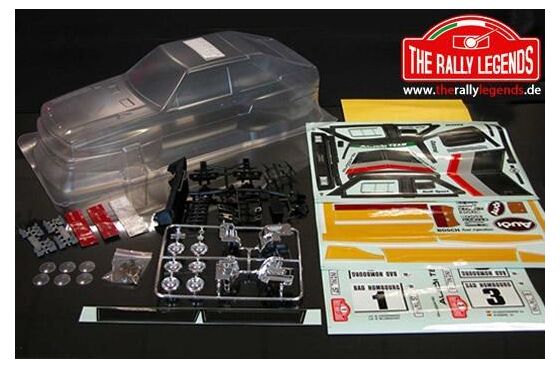 Karosserie - 1/10 Rally - Scale - Unlackiert - Audi Quattro mit Aufklebern und Zubehör