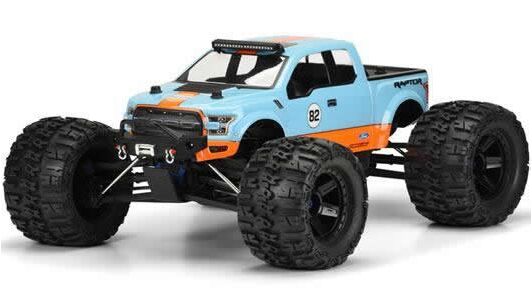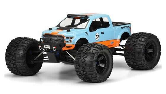 This is a Pro-Line 2017 Raptor Clear Body for Monster Trucks. Introducing one of the most anticipated Truck bodies of all time: the all-new 2017 Ford® F-150 Raptor truck body for Monster Trucks! Pro-Line's highly detailed yet functional replica has included all the rugged Raptor style and attitude into the body and decal sheet. The 2017 Raptor has a bold and tough body style and is the most cutting edge look available. This body completely transforms your REVO®, T-MAXX® 3.3, MGT or SUMMIT® into a True Scale Lifted Truck. If you are a Raptor fan, then this is the body for you! Be the envy of your friends.. Get your Pro-Line 2017 Ford® F-150 Raptor body today!