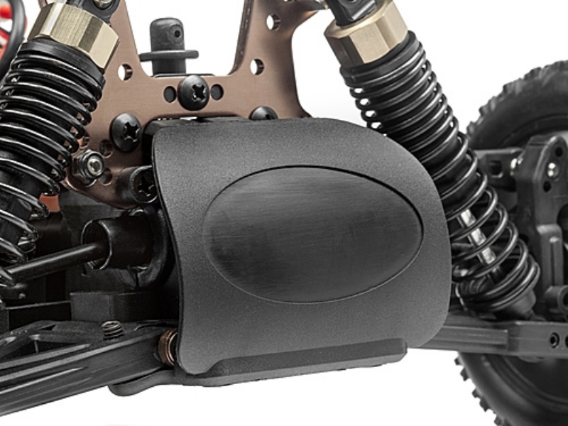 Der Antrieb der Strada-Red Line ist komplett kugelgelagert für maximale Effizienz, Fahrzeit und Lebensdauer. Kunststoff-Gehäuse schützen dabei alle drehenden Teile. Getriebedifferentiale kommen vorne und hinten zum Einsatz und bringen die Leistung über festgeklebte Reifen optimal auf den Boden.