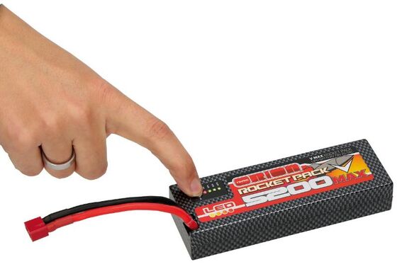 Per Knopfdruck kann bei den neuen V-Max Rocket Pack Stick Akkus die Spannungslage und somit der Ladezustand des Akkus geprüft werden. LiPo Akkus sollten immer zu 50-60% geladen gelagert werden.