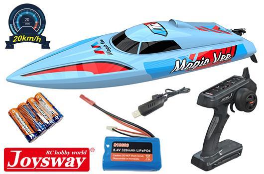 Das Joysway Magic Vee V6 ist ein schnelles und wendiges ferngesteuertes Speedboot, das sich perfekt für Einsteiger und Hobbyfahrer eignet. Mit seiner kompakten Bauweise und einfachen Handhabung sorgt es für jede Menge Fahrspaß in Pools, kleinen Teichen oder ruhigen Gewässern. Robust, zuverlässig und sofort einsatzbereit ? ideal für alle, die in die spannende Welt der RC-Boote eintauchen möchten.