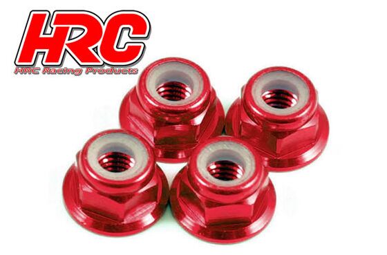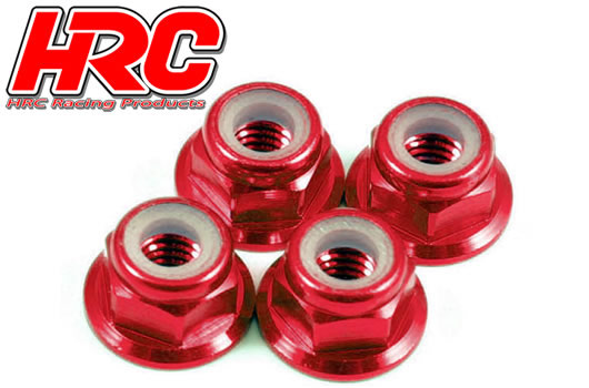 Radmuttern - M4 nyloc geflanscht - Aluminium - Rot (4 Stk.)