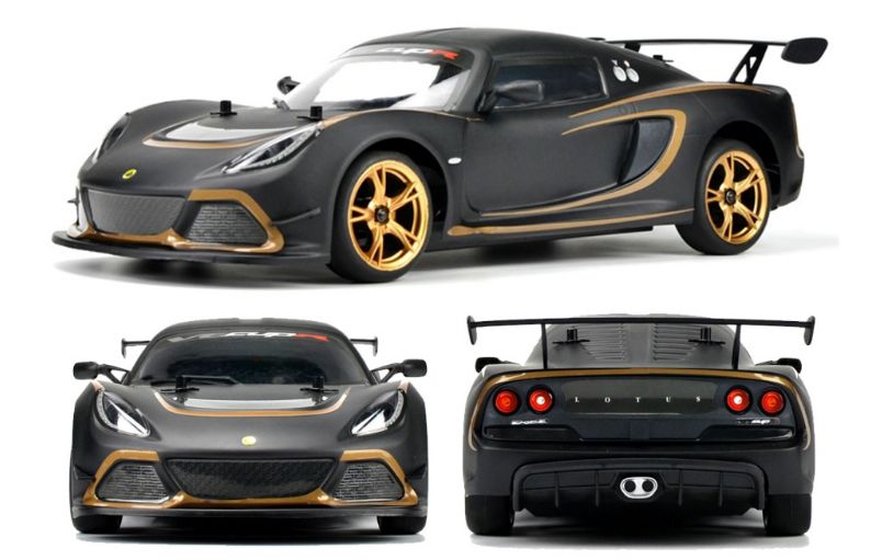Massstab 1:10 Brushed-Motor und Allradantrieb M40S Chassis mit Öldruckstossdämpfer, Einzelradaufhängungen, Kegeldifferentialen und gekapselter Ritzel/Hauptzahnrad-Einheit Scale-Felgen und Gummi-Bereifung Front-Rammer aus Schaumstoff Lizenzierte Karosserie von Lotus mit Details wie Spoiler, Spiegel, Kühlergrill, Scheinwerfer und Heckdiffusor