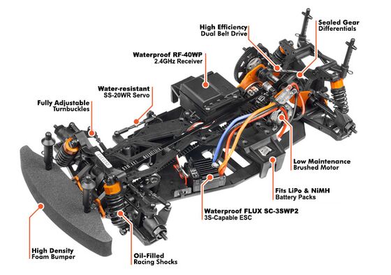Der Drift Weltmeister Vaughn Gittin Jr. und Mustang RTR haben sich mit Need for Speed zusammengetan, um diese einzigartige Straßen-, Strecken- und Driftmaschine zu bauen. 5.0 Liter reifenvernichtende Amerikanische Power mit inspirierten Designeinflüssen aus amerikanischer, japanischer und europäischer Driftkultur, Vaughn hat hier aktuellste Technologie mit einem nostalgischen, zeitlosen 69er Ford Mustang vereint! Der RTR-X wurde von Grund auf für härteste Einsätze konstruiert; der RTR-X ist KEIN Modell, dass mit Samthandschuhen angefasst werden muss. Während Vaughn der Einzige ist, der mit seinem Mustang durch die Straßen driftet, kann die ganze Welt in den Genuss kommen den HPI 1:10 RTR-X zu fahren. Der neue RTR HPI RS4 SPORT 3 verspricht jede Menge Spaß, bietet ein super Fahrverhalten und ist pflegeleicht. Er ist ab sofort wasserdicht und mit dem neuesten 2,4GHz Funkfernsteuer System ausgestattet! Das Chassis ist professionell vormontiert und direkt aus der Verpackung heraus fahrbereit. Mit dem HPI RS4 SPORT 3 können Sie schnell und einfach in den Genuss von professionellem RC-Car Racing kommen. Maximaler Spaß!