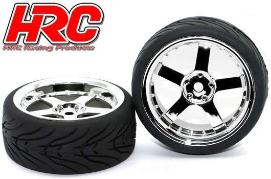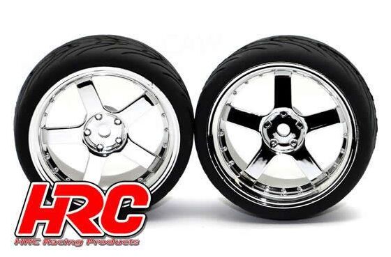 Tunen Sie Ihr 1:10 Tourenwagenmodell mit diesen schicken HRC-Reifen! Das Profil bietet zusätzliche Haftung auf staubigen Oberflächen.
