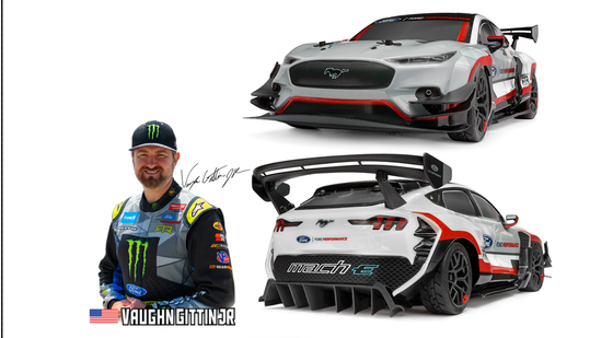 Dieser Sport 3 FLUX verfügt über den erstaunlichen, vollelektrischen Ford Mustang Mach-E mit Allradantrieb, dessen Styling vom Fun-Haver selbst, dem professionellen Drift-Champion Vaughn Gittin Jr., abgestimmt und optimiert wurde, um der fantastische Ford Mustang Mach-E 1400 Prototyp zu werden, ein Prüfstand für fortschrittliche Materialien und Technologien. Mit SIEBEN Elektromotoren und superhohem Abtrieb ist er nicht nur ein Forschungsfahrzeug, sondern auch ein absoluter Leistungsträger, der sich perfekt für eine Vielzahl von Fahrzeugtests eignet, sei es auf dem Dragstrip, der Driftstrecke oder der Rennstrecke! In der Full-Size-Version stecken mehr als 10.000 Stunden Entwicklungsarbeit zwischen Ford Performance und RTR, um sicherzustellen, dass er die Lücke zwischen den Möglichkeiten eines Elektrofahrzeugs und den Vorstellungen der Kunden schließt.
