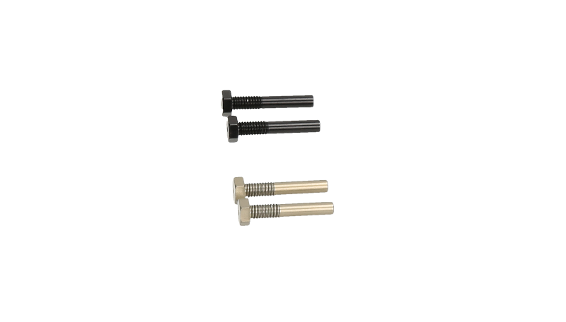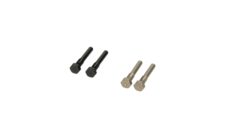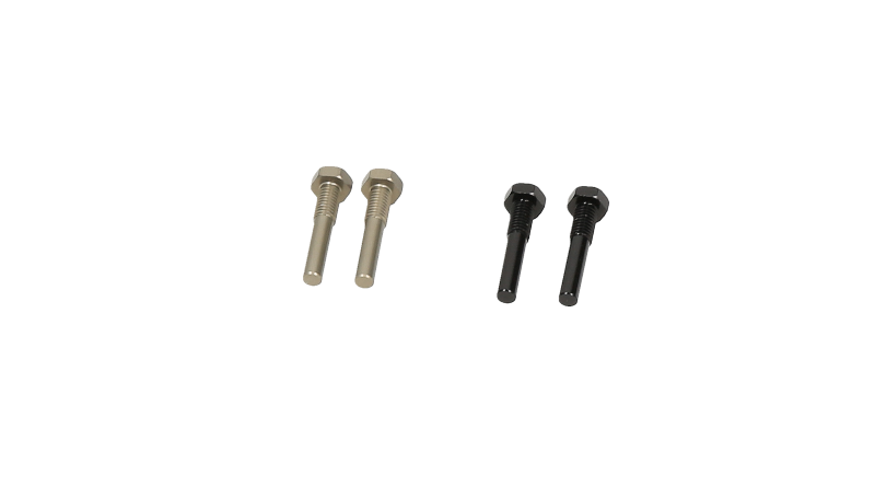 These Screw Type Shock Pins securely hold the shock to the suspension arm. The new design features a hex head for easy installation, threads that go directly into the shock arm, and left hand & right hand threads to prevent the suspension arm movement from loosening the pins. The set comes with 2 left hand threaded pins and 2 right hand threaded pins. The pins are machined from lightweight aluminum and anodized for easy identification of the thread direction. Compatible with: All D8 and E8 series 1/8 buggies that use monocoque suspension arms.