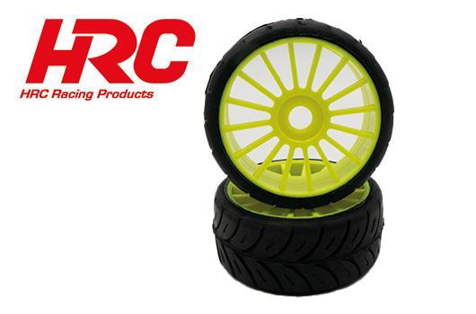 Reifen - 1/8 Buggy - montiert - Gelbe Felgen - 17mm Hex - Rally Game SPORT Radials (2 Stk.)