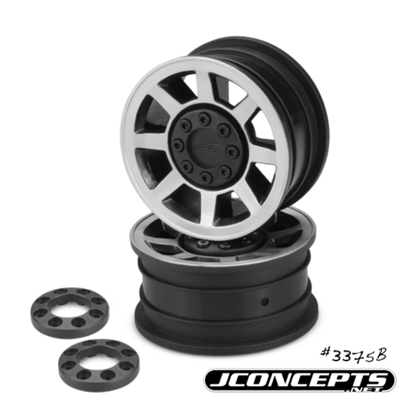 Vengeance - 1.9 Vaterra Ascender 12mm glue-on wheel - (black w/ silver face plating) - 2pc.
